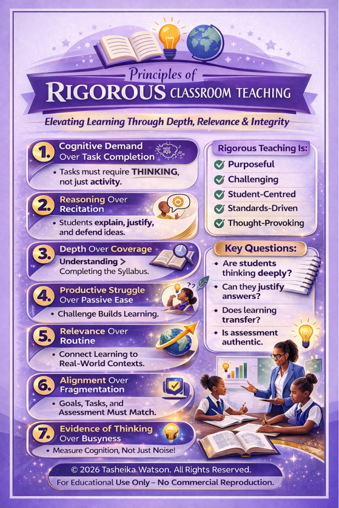 A rigorous classroom requires students to interpret, analyse, justify, construct meaning, and transfer knowledge beyond immediate contexts. Difficulty alone does not ensure rigour. As Depth of Knowledge research clarifies, complexity of thought; not task hardness, defines true cognitive demand.